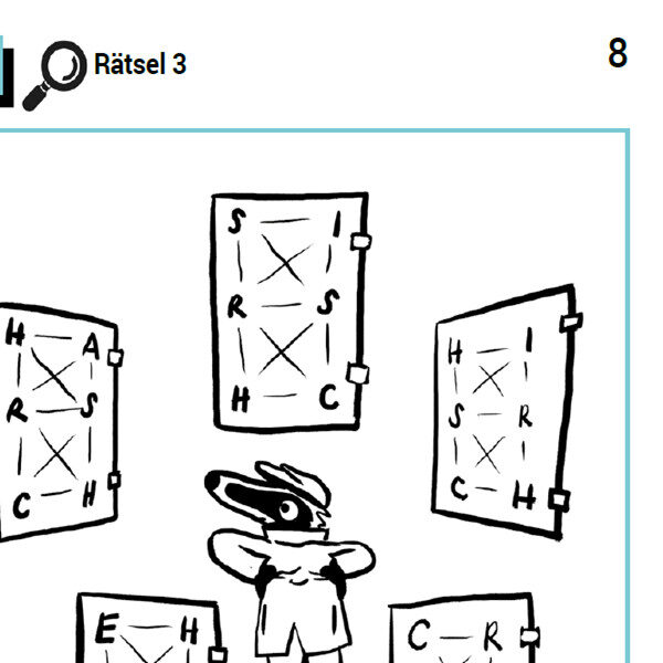 Hast du die 8 Rätsel am gewünschten Ort ausgelegt, suchen die Kinder anhand einer Schatzkarte oder Markierungen auf dem Boden die verschiedenen Rätsel der Reihe nach auf und beantworten die Fragen von Detektiv Dachs. Sind alle Fragen richtig beantwortet, lässt sich ein 4-stelliger Code berechnen, mit dem die Kinder den Schatz öffenen können.