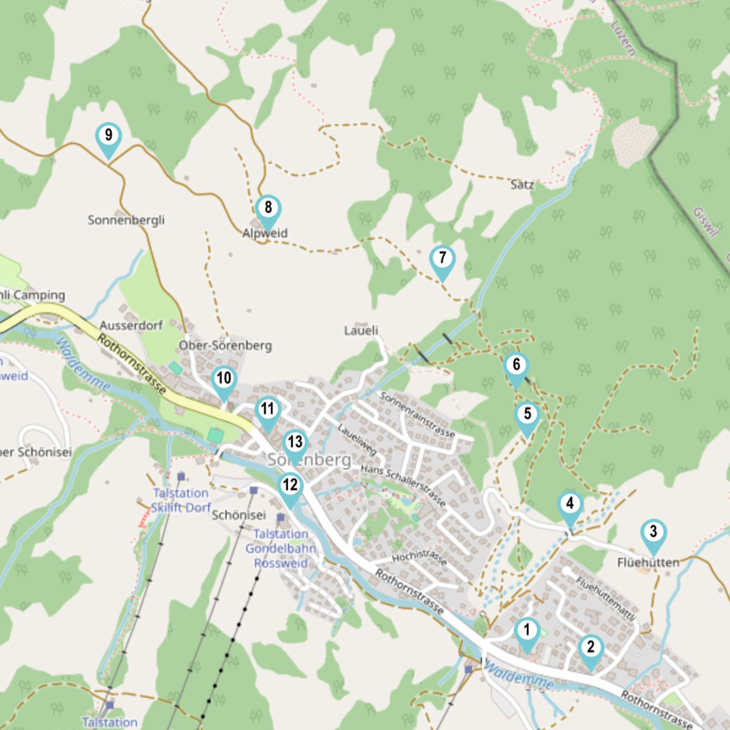 Start: Reka-Feriendorf Sörenberg, Rothornstrasse 59, 6174 Sörenberg. Bushaltestelle “Sörenberg Platz” oder Parkplätze in unmittelbarer Umgebung.